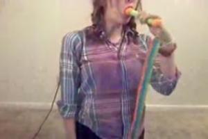 Met de mobiel filmt het meisje het masturberen met de dildo