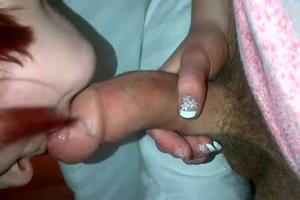 De mooie roodharige pijpt de grote lul likt zijn eikel en laat haar mondje neuken, waarna ze een bef beurt krijgt.
