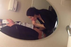 Blonde huishoudhulp geeft donkere hotelgast een blowjob op het toilet