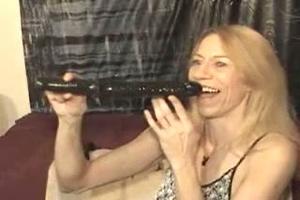 De een slikt degens, deze rijpe slet slikt dildo