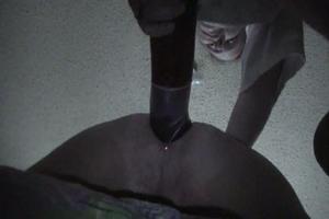 Paardjerijden met haar anus op een enorme dildo