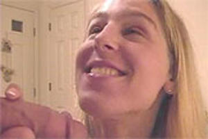 Hij stuurt de geile buurvrouw weg met haar bek vol sperma