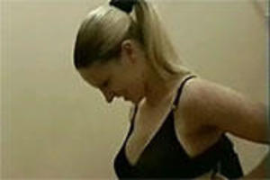 In sexy lingerie mastubeerd het blondje met sex toy's