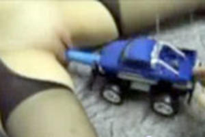 Aziatische teef steekt dildo diep in haar behaarde kut
