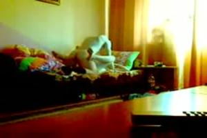 Haar lekkere kont vol in beeld terwijl ze op zijn pik wipt